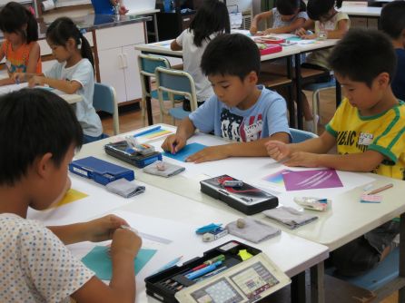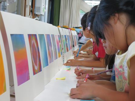 The second EGAKU session we held at Sekimachi Kita Elementary School was for students in grades 1-3. Twenty four pictures of the participants' hearts were created amidst an mood of anticipation of the approaching summer holidays.